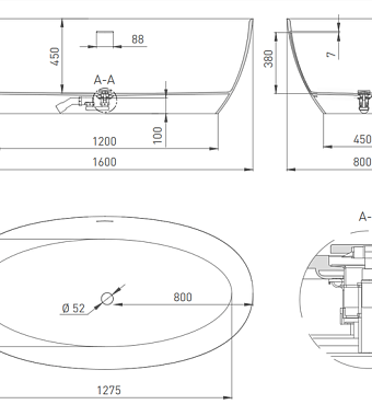 Тип ванны отдельностоящая