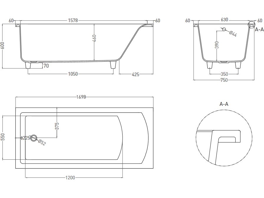 Ванна каменная SALINI CASCATA 104113MRF 169,8х75см встраиваемая - купить в интернет-магазине Орегон с доставкой в регионы Крыма.