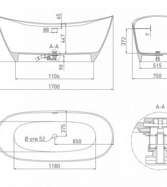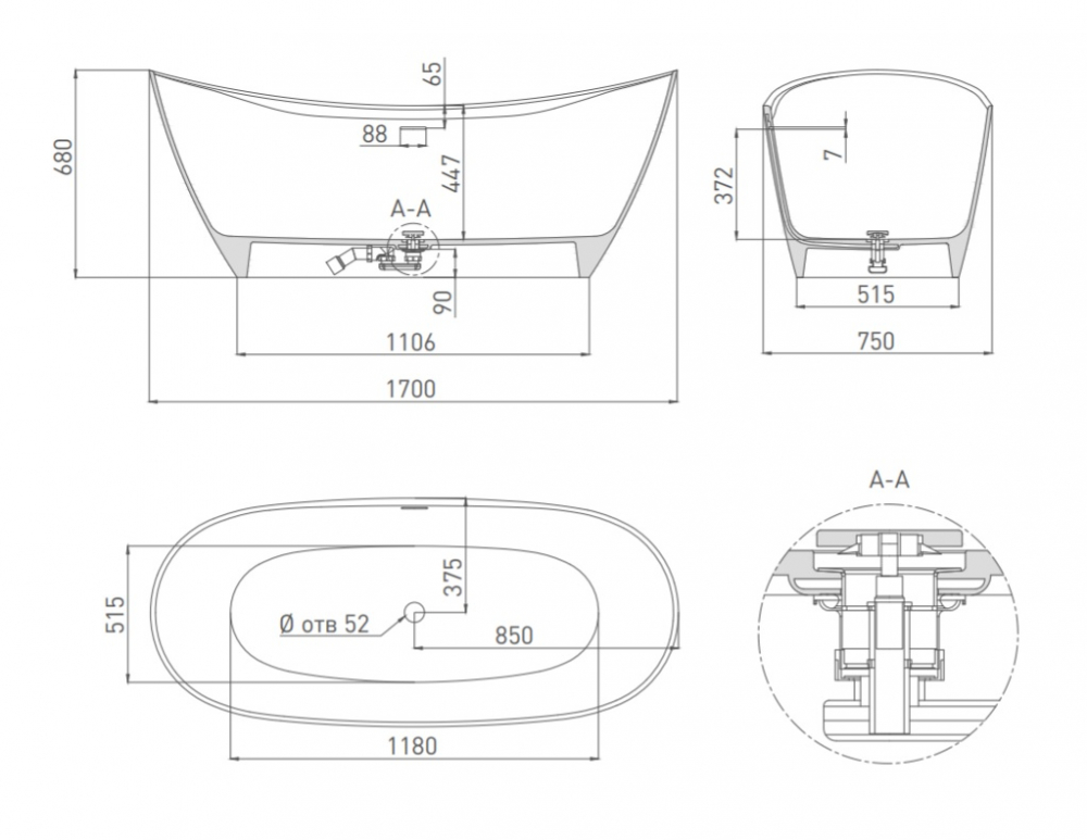 Тип ванны отдельностоящая