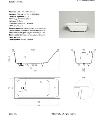«Ванна каменная SALINI ORLANDA 102116MRH 170х80см встраиваемая» в Ялте и Крыму