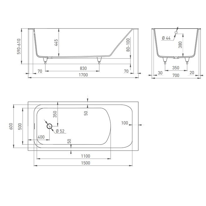 Тип ванны пристенная