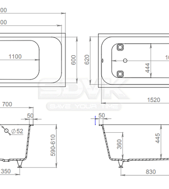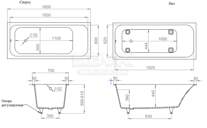 Тип ванны встраиваемая