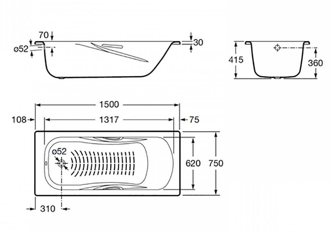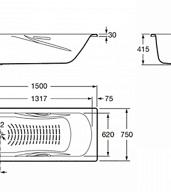 Ванна стальная ROCA Princess N 7.2204.E.000.0 150х75см пристенная - купить в интернет-магазине Орегон с доставкой в регионы Крыма.