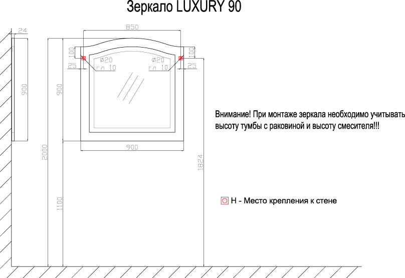 Вид зеркала без подсветки