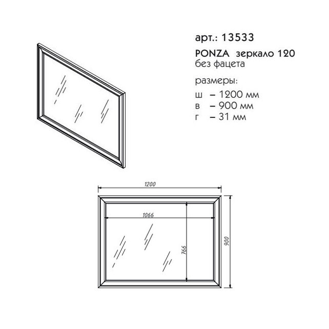 Зеркало CAPRIGO ПОНЦА 13533-В231 90х120см без подсветки - купить в интернет-магазине Орегон с доставкой в регионы Крыма.