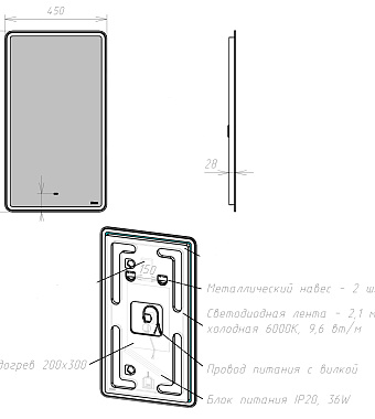 Зеркало LEMARK Element LM45Z-E 80х45см с подсветкой - купить в интернет-магазине Орегон с доставкой в регионы Крыма.