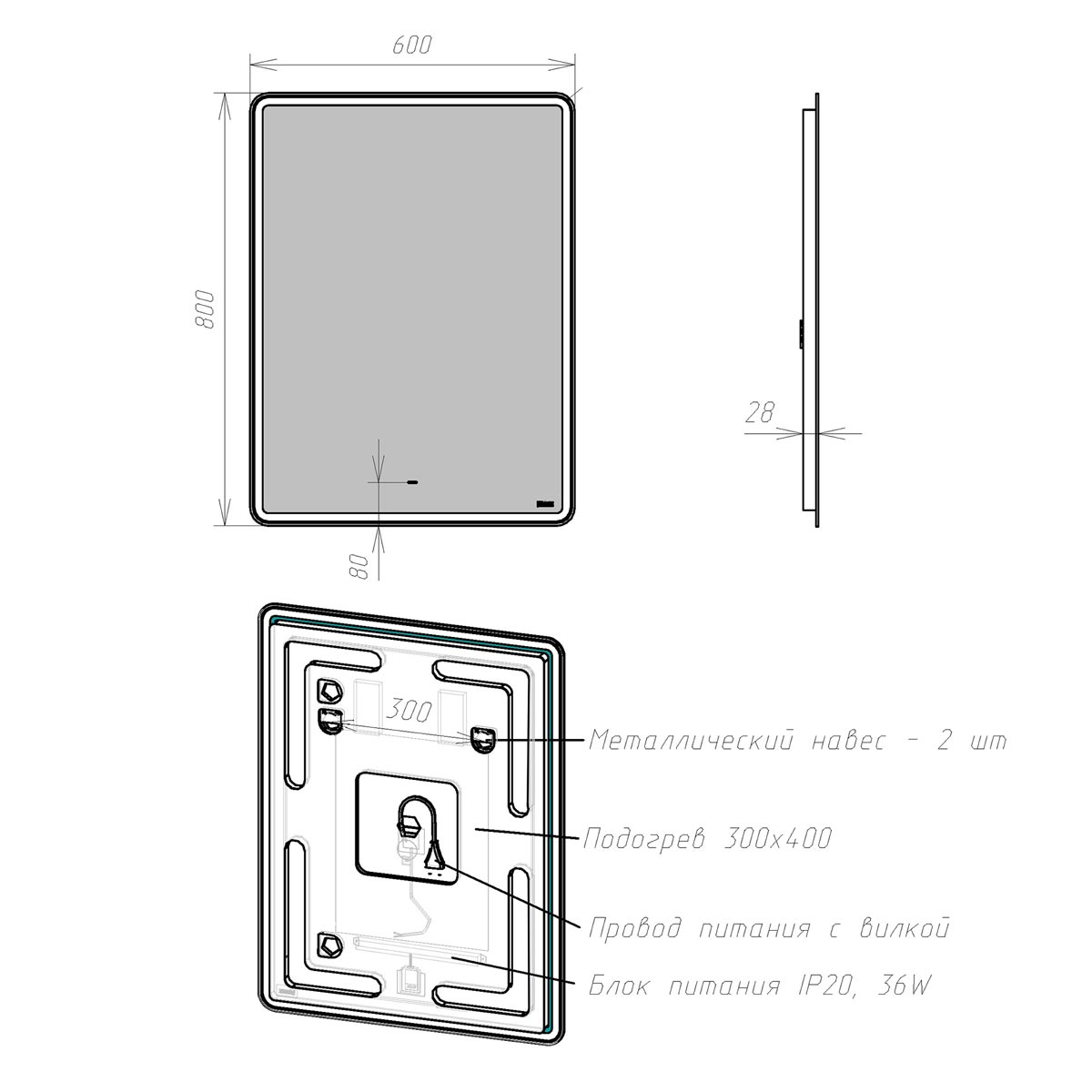 Зеркало LEMARK Element LM60Z-E 80х60см с подсветкой - купить в интернет-магазине Орегон с доставкой в регионы Крыма.