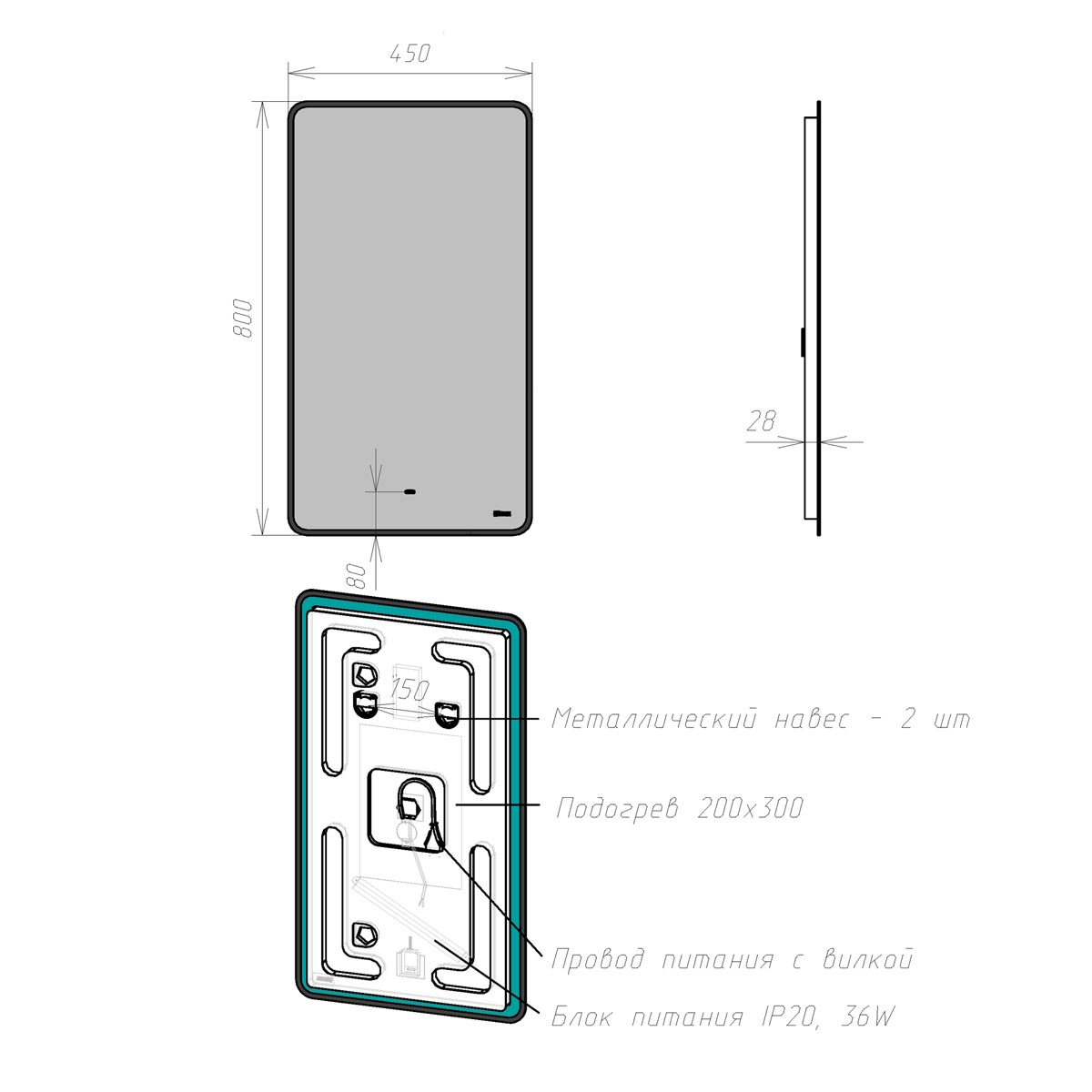 Зеркало LEMARK Mioblack LM45ZM-black 80х45см с подсветкой - купить в интернет-магазине Орегон с доставкой в регионы Крыма.