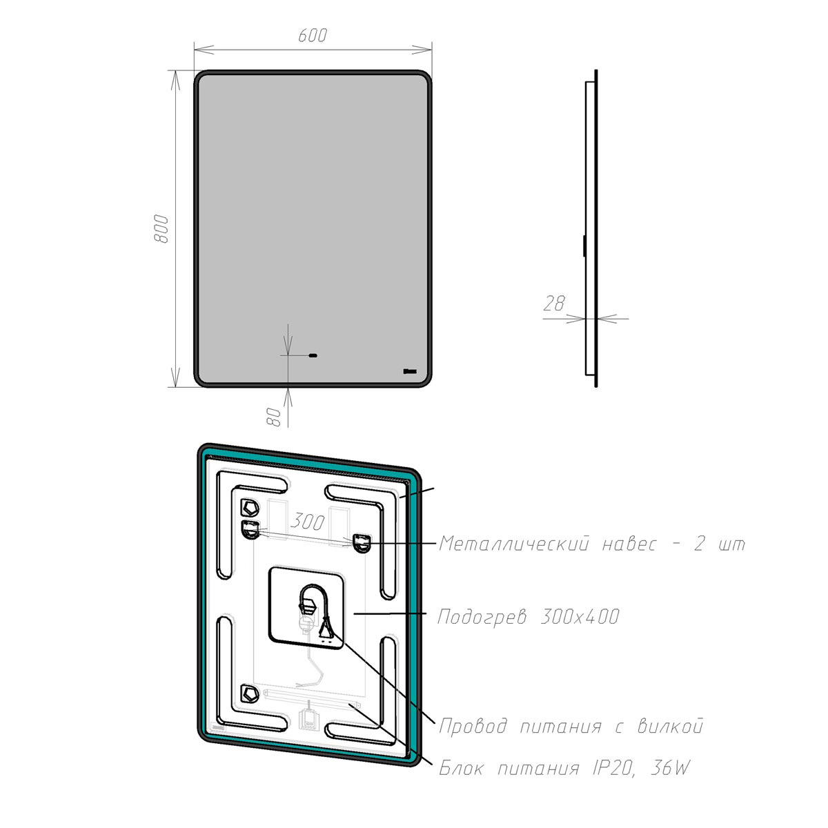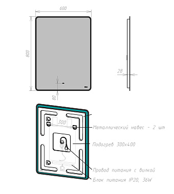Зеркало LEMARK Mioblack LM60ZM-black 80х60см с подсветкой - купить в интернет-магазине Орегон с доставкой в регионы Крыма.