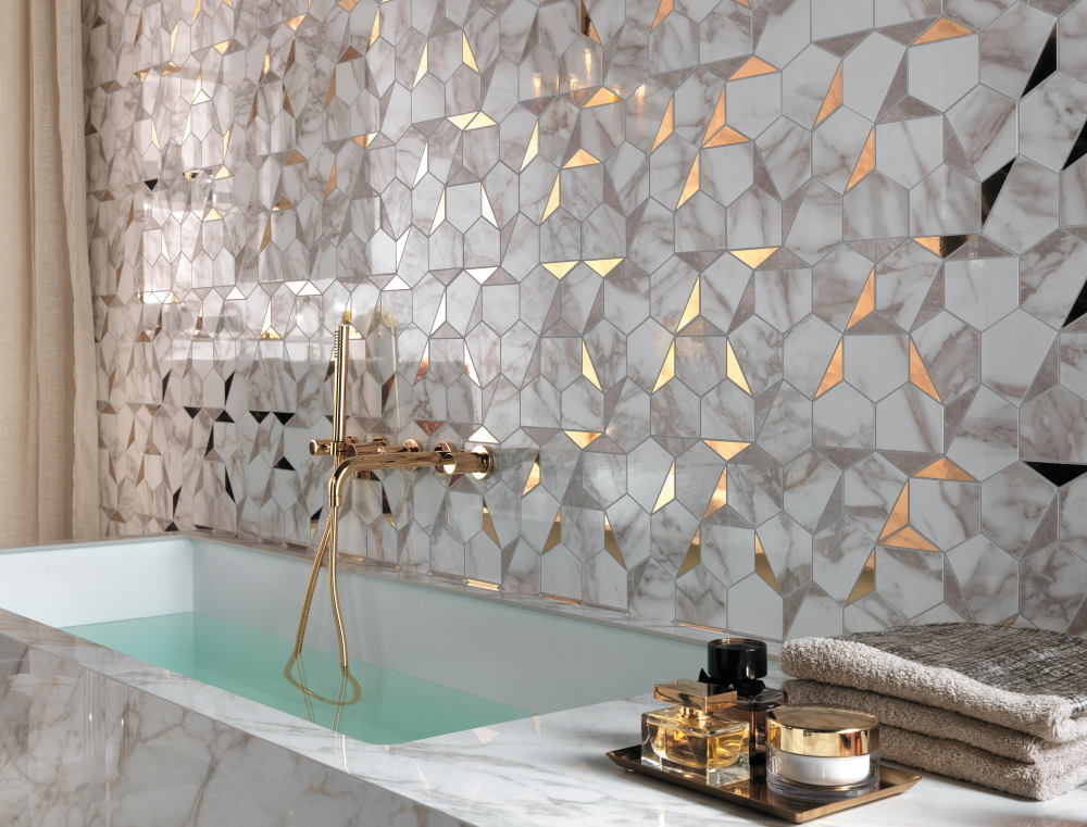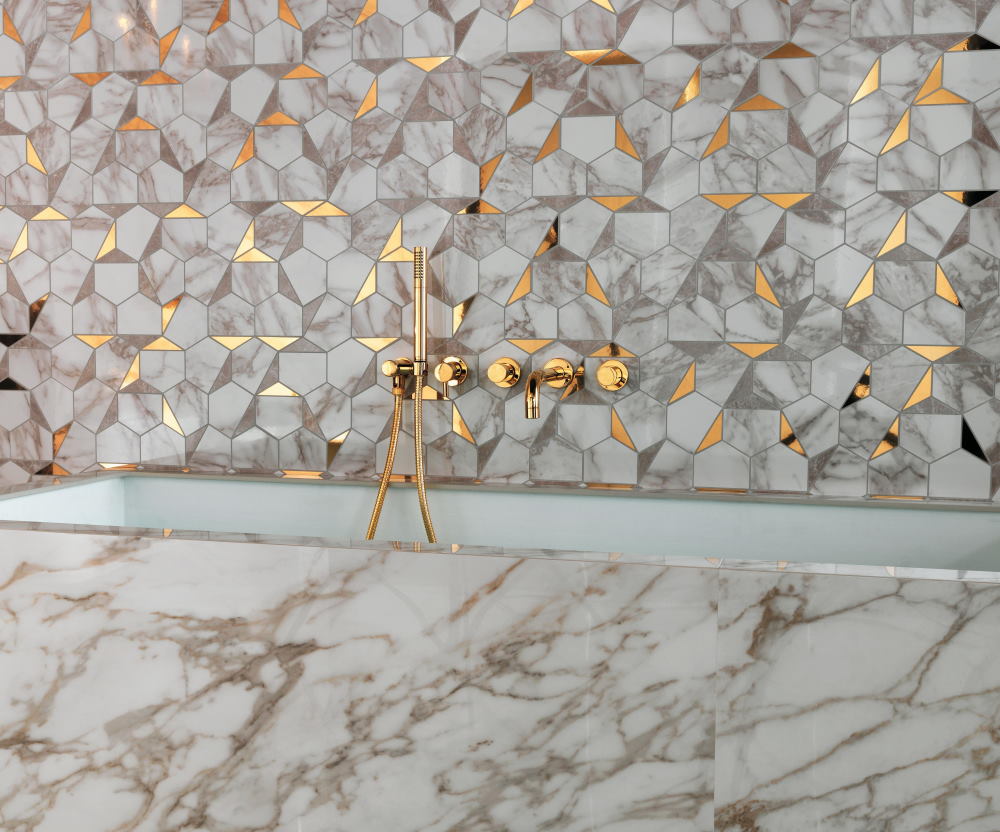 Дизайн Gold Hex Gris-Calacatta