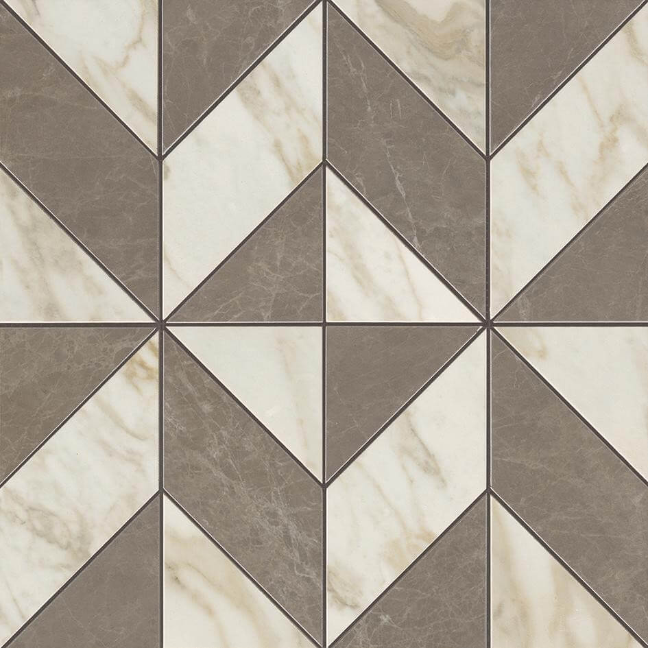 Дизайн Gris-Calacatta Mosaico Cubes Lappato