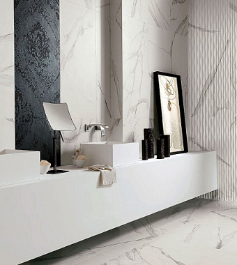 Купить настенную керамическую плитку FAP CERAMICHE fLSZ | Длина - 25см, Ширина - 75см | Упаковка по 0.938 кв.м.| Настенная плитка FAP CERAMICHE Roma fLSZ Fold Statuario 75х25см 0,938кв.м. матовая в интернет-магазине Орегон: Белый керамика Италия | Доставка по всему Крыму и Севастополю | Оплата онлайн или в магазине